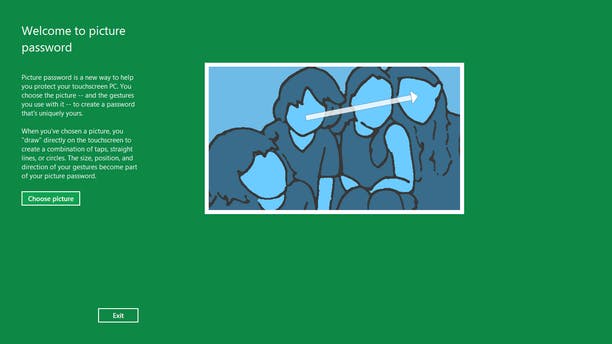 Het hele aanmeldingsproces is op de schop gegaan. Het 'Druk op Ctrl+Alt+Del-scherm' dat verschijnt op vorige Windows-versies na het opstarten van het systeem, is verdwenen. Nu sleept u (met de muis ietwat onhandig) een schermvullende afbeelding weg naar boven, om vervolgens een gebruikersaccount te kiezen. U kunt niet alleen aanmelden met een wachtwoord, ook met een pincode. Het bijzonderste is echter nog het aanmelden met een picture-password. Op deze manier kunt u aanmelden door een patroon te tekenen (met muis of touch) op een foto. Zoals al vermeld, is het ook nog mogelijk om aan te melden via een Windows Live ID.