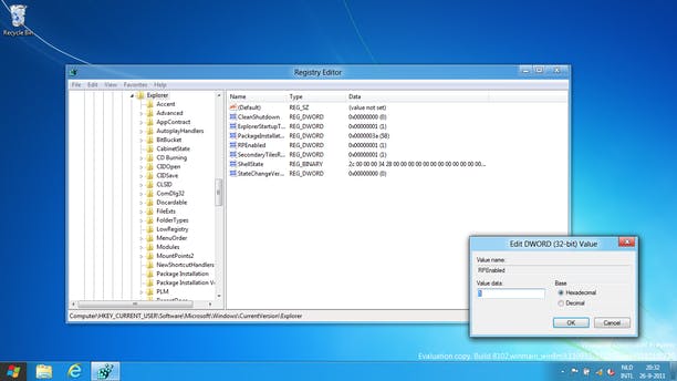 De Metro-interface vereist behoorlijk veel gewenning. Er is een trucje om deze hele laag uit te zetten. Hiervoor moet u in het register zijn. Voer in het Metro-startscherm Regedit in, gevolgd door een druk op Enter. Zoek vervolgens in de boomstructuur naar HKEY_CURRENT_USER\Software\Microsoft\Windows\CurrentVersion\Explorer, klik bij RPEnabled op de rechtermuisknop en kies Modify. Vervolgens vervangt u de waarde 1 door een 0. Vanaf nu kunt u weer 'ouderwets' aan de slag met een Windows-interface met een startmenu. Dit kan echter vrij verlammend werken voor het besturingssysteem. U krijgt Metro simpel terug in door de 0 weer te vervangen door een 1. Overigens bent u de Lint-interface van de verkenner ook kwijt met dit trucje.