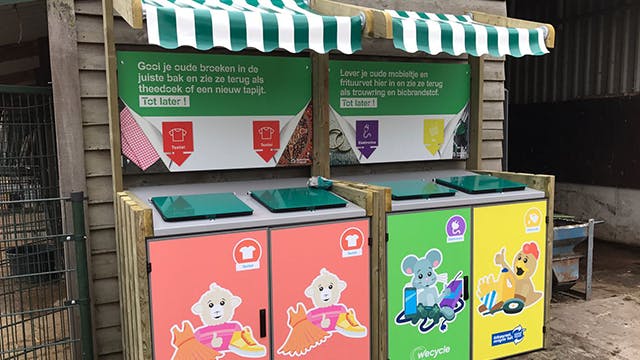 Voor het inleveren van oude computers zijn die niet geschikt. Wecycle heeft daarnaast grotere verzamelbakken die je vooral bij bouwmarkten en kinderboerderijen terugvindt, waar middelgrote apparaten als laptops en printers achtergelaten kunnen worden. Desktop-pc’s of monitoren kun je doorgaans niet inleveren bij deze inzamelpunten, maar kringloopwinkels en milieustraten accepteren deze producten wel.
