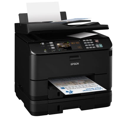 Wij kregen van Epson het topmodel WorkForce Pro WP-4545 DTWF. Deze uitvoering kan duplexprinten, scannen, kopiëren, en faxen. Hij heeft een sheetfeeder en drie papierlades, samen goed voor 580 vellen. De printer kan naast lokaal via usb, ook bedraad of via wifi met uw netwerk verbonden worden. De bediening gaat grotendeels via een aanraakscherm waarnaast contextgevoelige knoppen oplichten. Verder heeft de printer nog een paar fysieke knoppen. De interface heeft niet echt een hoofdmenu, maar laat één van de basisfuncties zien die met een fysieke knop gekozen worden (kopiëren, scannen of faxen). De tekst die de WorkForce Pro afdrukt, is prima. De scherpte haalt net niet het niveau van een goede laserprinter, maar wij hebben niets te klagen. Ook kleur- en fotoafdrukken zijn goed, al zijn er inkjetprinters (specifiek gericht op foto's) die foto's nog beter uit de printer laten rollen. Afdrukken gaat lekker snel, Epson belooft bij zwart-wit zestien pagina's per minuut, wij halen er vijftien. Die snelheid wordt ook al in de eerste minuut gehaald waarin een printopdracht gegeven wordt. Duplexen gaat wat langzamer, maar is nog steeds vlot doordat er niet gewacht wordt op drogen, zoals we bij andere inkjets weleens zien.