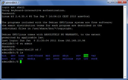 Via de console kan toegang gekregen worden tot de pure Linux op de B3.