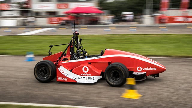 Blonk en zijn collega’s gingen op zoek naar iemand die hen aan zo’n auto kon helpen. Die vonden zij uiteindelijk in een Duits team dat meedeed aan de Formula Student-competitie. Bij die wedstrijd bouwen universiteitsteams van over de hele wereld een zelfrijdende (race)wagen waarmee zij over een circuit leren rijden. “We zochten specifiek iemand die een zelfrijdende auto beschikbaar had. Met de hersenbesturing kun je namelijk alleen voor- en achteruit, dus het volgen van het circuit moeten we aan de autonomie van de auto overlaten.”