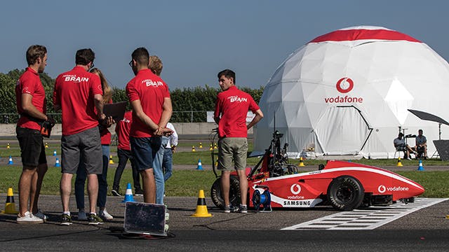 Het mooie van de competitie is dat het niet per definitie plaats hoefde te vinden op het fysieke circuit. Via een 4G-verbinding kon alles virtueel plaatsvinden. Of beter gezegd, twee 4G-verbindingen. Blonk: “De ene verbinding werd het hersensignaal verzonden, een andere verbinding stuurde de videobeelden van de auto naar een vr-bril die de coureur op had.” Door het gebruik van twee aparte verbindingen bleven ze beide stabiel en was er geen noodzaak om naar relatief nieuwe technologieën als 5G te kijken.”