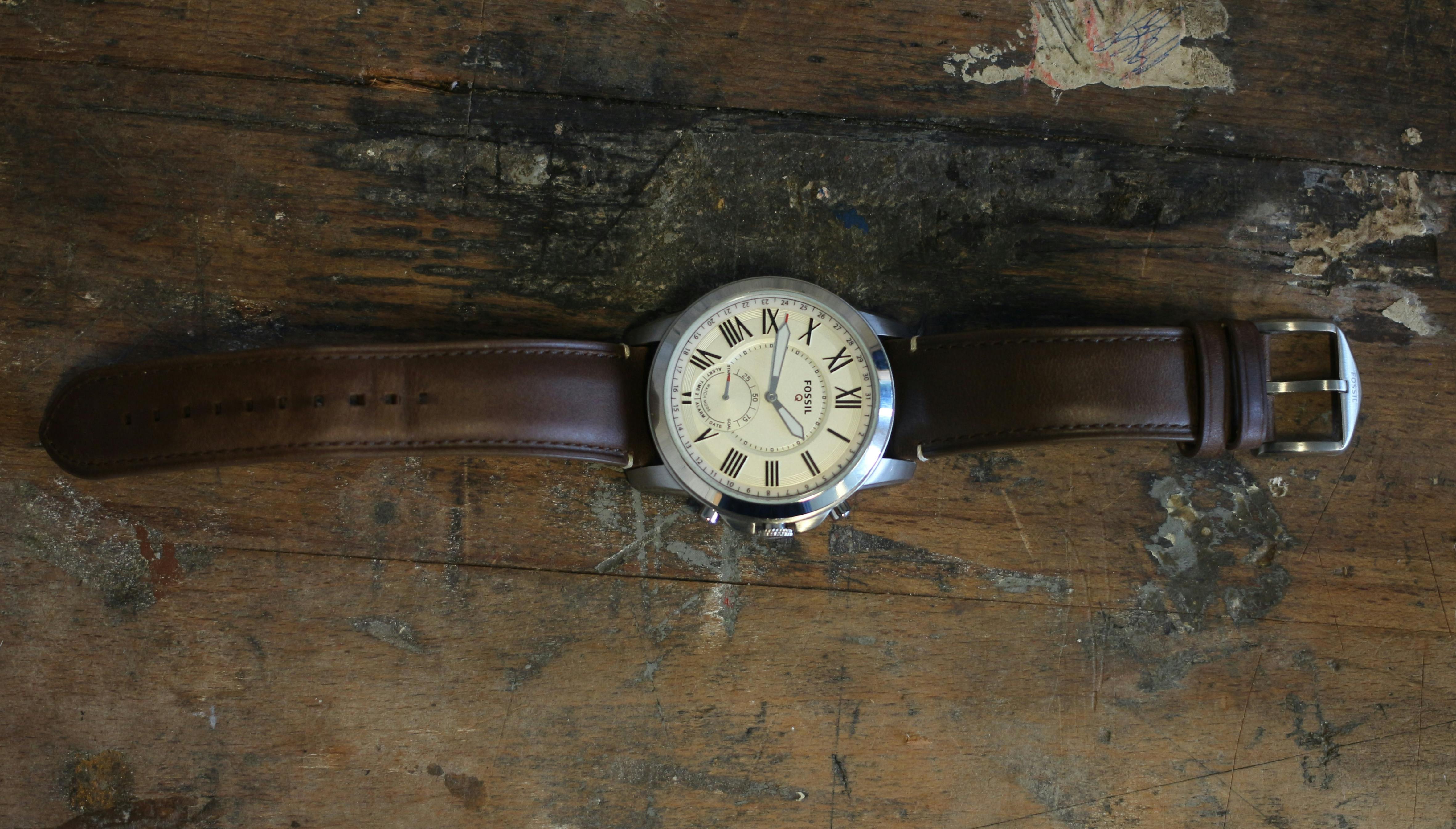 Smartwatches kunnen als sieraad gewoonweg niet tippen aan echte horloges. Want geef toe, de lichtgevende schermpjes, die vaak in dikke polsblokken verwerkt zitten en als het tegenzit ook nog eens vierkant zijn, kan je alles noemen behalve elegant, fraai of zakelijk. Fossil maakt beide soorten horloges: smartwatches op Android Wear, zoals de Fossil Q Marshall. Maar het merk staat natuurlijk vooral bekend om zijn kenmerkende (doch) gewone horloges. Deze Q Grant is echter een hybride variant, die het beste van beide werelden biedt.