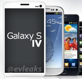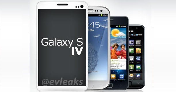 Een productshot van de Galaxy S IV is dinsdag mogelijk online verschenen. Uit de afbeelding, afkomstig van het doorgaans betrouwbare EVleaks, wordt duidelijk dat de telefoon groter is dan zijn voorganger en dat Samsung voor het design teruggrijpt naar de Galaxy S II.