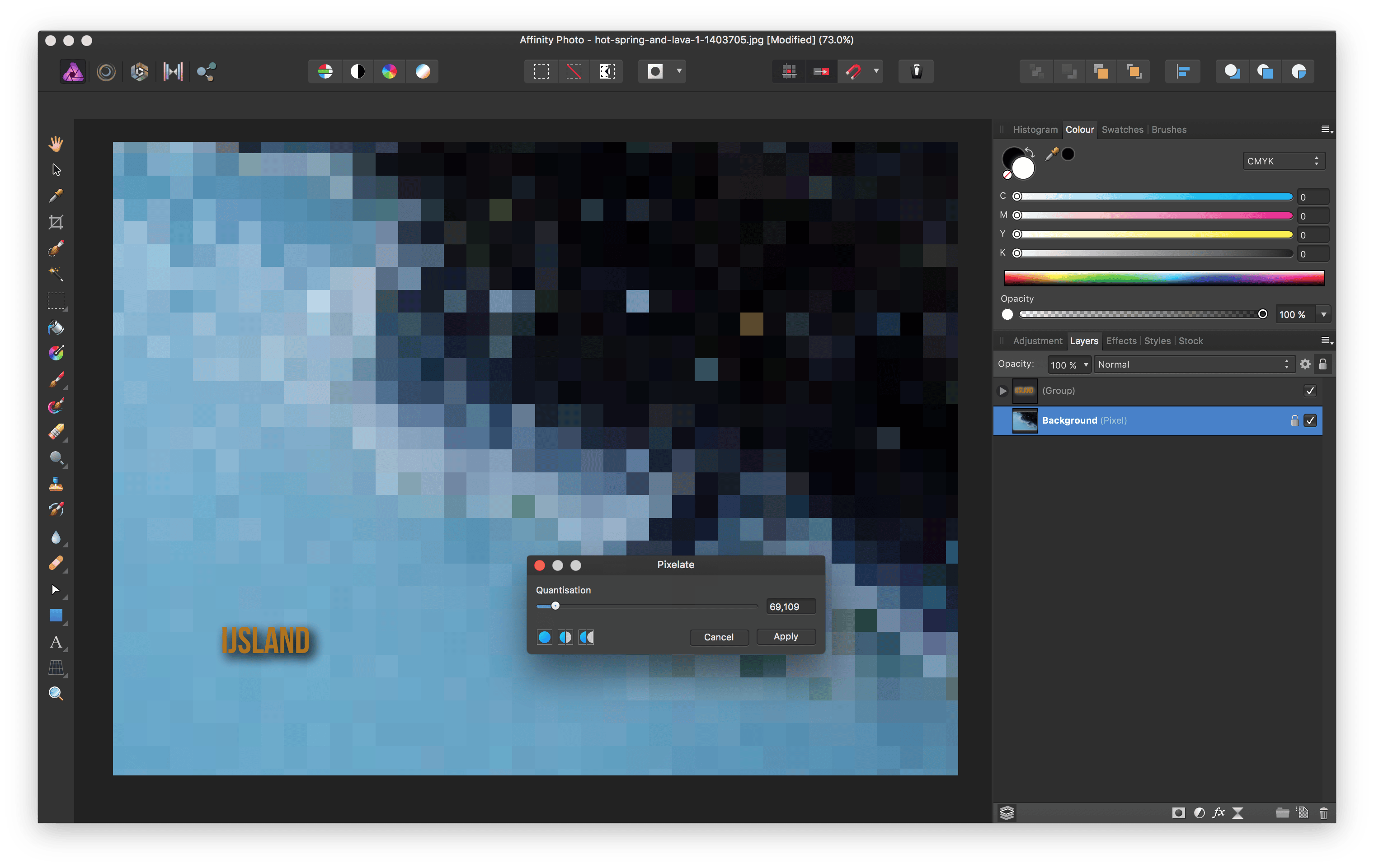 Net als Photoshop heeft ook Affinity Photo een aantal filters aan boord. Ga naar Filters en selecteer één van de categorieën. Om een telefoonnummer uit een foto te anonimiseren, kies je bijvoorbeeld Filters / Distort / Pixelate. De instellingen voor een filter worden in een pop-up weergegeven. Pas de instellingen aan en kies voor Apply. Je ziet een voorbeeld van het filter overigens meteen in je foto. Zorg wel dat je de juiste laag hebt geselecteerd voordat je een filter toepast. Onder de filters vind je ook nog handige gereedschappen als Shadows/Highlights en Haze Removal.