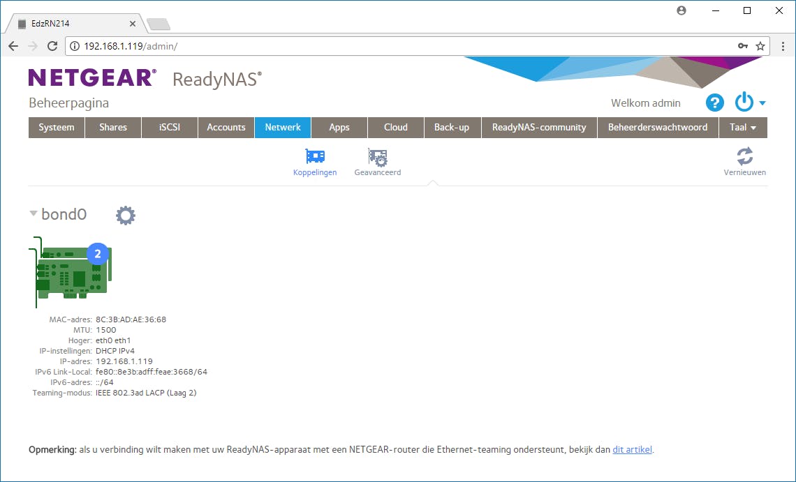 Een tweede lan-poort biedt de mogelijkheid de nas gelijktijdig op een tweede netwerk aan te sluiten of je kunt beide poorten samenvoegen tot één supersnelle verbinding. Daarvoor is dan wel een netwerkswitch nodig die dit ondersteunt en die bij voorkeur de mogelijkheid biedt de poortinstellingen te configureren. Trunking biedt bovendien veelal pas echt snelheidswinst als meerdere gebruikers gelijktijdig dezelfde nas gebruiken, deze gebruikers hebben immers doorgaans een normale gigabitverbinding.