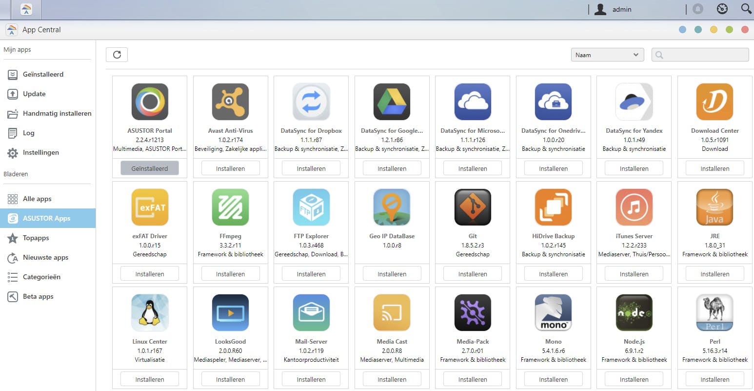 Goed zijn de echte nas-apps zoals FFmpeg, Surveilllance Center, Plex, Asustor Portal voor gebruik van de nas als pc met LibreOffice, Chrome, Netflix en YouTube, en ook de verschillende back-up- en synchronisatie-apps voor onder meer Google Drive en Microsoft OneDrive.