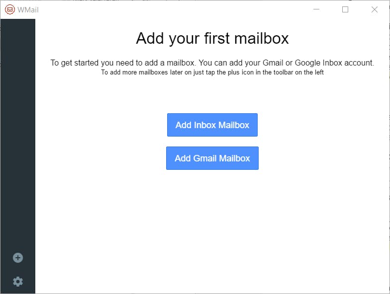 Zodra Wmail gestart is, kun je direct een Gmail- of Inbox-account toevoegen.
