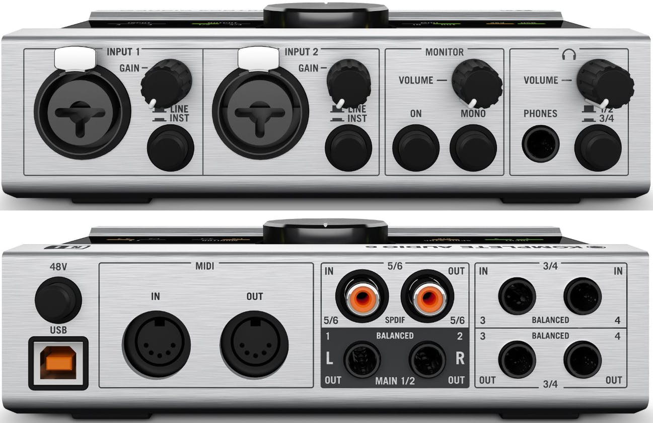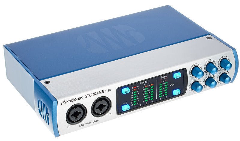 Prijs: € 239,- Wil je echt serieus met muziek maken aan de slag, dan heb je een interface nodig met meerdere in- en uitgangen. Deze audio-interface van Presonus heeft twee audio-ingangen aan de voorkant en nog twee aan de achterkant. Je kunt er dus vier instrumenten (of twee stereo-instrumenten) op aansluiten. De Studio 68 heeft ook vier audio-uitgangen aan de achterkant in de vorm van jack-aansluitingen. Alle vier ingangen hebben een pre-amp, je kunt er dus ook vier microfoons op aansluiten om bijvoorbeeld drums op te nemen.