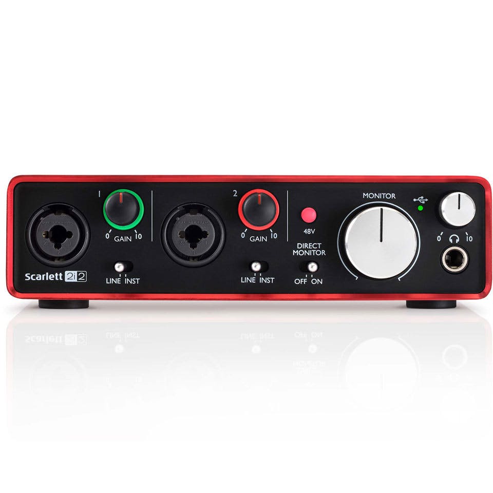 Prijs: € 95,- Voor nog geen honderd euro heb je een hele gave audio-interface van het bekende studiomerk Focusrite. De audio-interface heeft eigenlijk alles wat je nodig hebt als je weleens je eigen gitaarspel of zang op wilt nemen. De eerste audio-ingang is voor je microfoon, de ingang beschikt over een knop om fantoomvoeding te genereren. De tweede ingang is bedoeld voor gitaar, maar door de schakelaar kun je die ook gebruiken voor line level-apparaten zoals synthesizers. Aan de achterkant vind je de usb-aansluiting en twee tulp-aansluitingen om het apparaat op luidsprekers aan te sluiten.