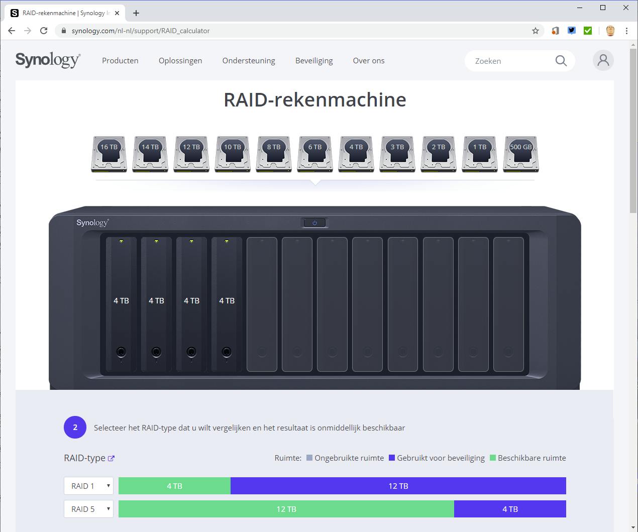 Is de gewenste opslagcapaciteit bekend, dan is de invulling afhankelijk van het aantal schijven dat in de NAS past én de gewenste configuratie. Bij jbod en raid0 is er geen verlies van opslagcapaciteit, maar ook geen extra bescherming van de gegevens op de NAS als een van de schijven stukgaat. Is er wel bescherming nodig, dan is raid1 of raid5 de meest voorkomende keuze, maar die kosten weer een deel van de opslagcapaciteit. Raid1 is altijd de onvoordeligste.