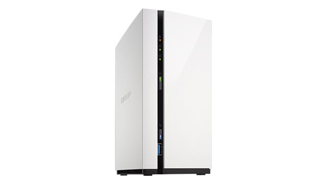 QNAP heeft de TS-228A van alle apparaten in de test het minst ‘technische’ uiterlijk gegeven. De strakke witte behuizing is ook een stijlbreuk met alle andere NAS-apparaten van QNAP, maar voor iedereen die het apparaat niet in de meterkast moet zetten, wel een uitkomst. Daarbij is de TS-228A prettig stil. Het hart van de NAS wordt gevormd door een Realtek RTD1295-processor en maar liefst 2 GB ram. Opvallend is echter dat de 4K-transcoding die deze processor op papier biedt, op de TS-228A niet werkt.