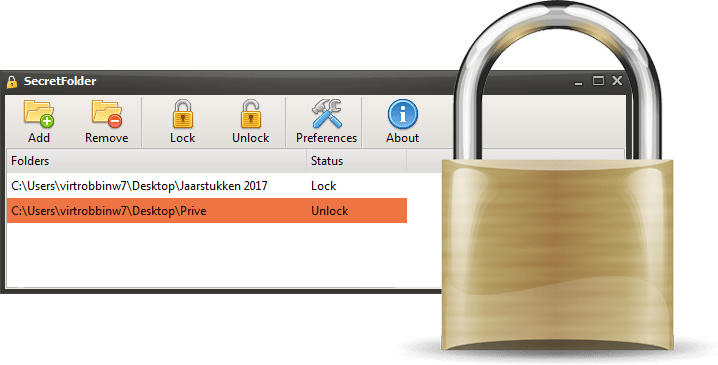 Het is in Windows lastig om mappen te verbergen voor andere mensen die dezelfde computer gebruiken. Met SecretFolder krijg je dit wel voor elkaar. Start het programma, stel een wachtwoord in en wijs de map aan die je wilt verbergen. Je kunt meerdere mappen op deze manier maskeren. De map en inhoud zijn niet langer zichtbaar in Windows Verkenner. De map ‘verdwijnt’ met de knop Lock en verschijnt weer met de knop Unlock. De werking van SecretFolder is zeer eenvoudig, maar het is onduidelijk welke technische oplossingen SecretFolder gebruikt voor de beveiliging. Dit lijkt op de Engelstalige uitdrukking ‘security through obscurity’. Dit komt neer op beveiliging die mede tot stand komt door de techniek achter de beveiliging ‘geheim’ te houden. Dit is geen waterdicht systeem, maar voor de meeste privégebruikers is het wel voldoende. Let op: gebruik SecretFolder nooit op speciale (Windows-)mappen, maar alleen op mappen die je zelf hebt aangemaakt.