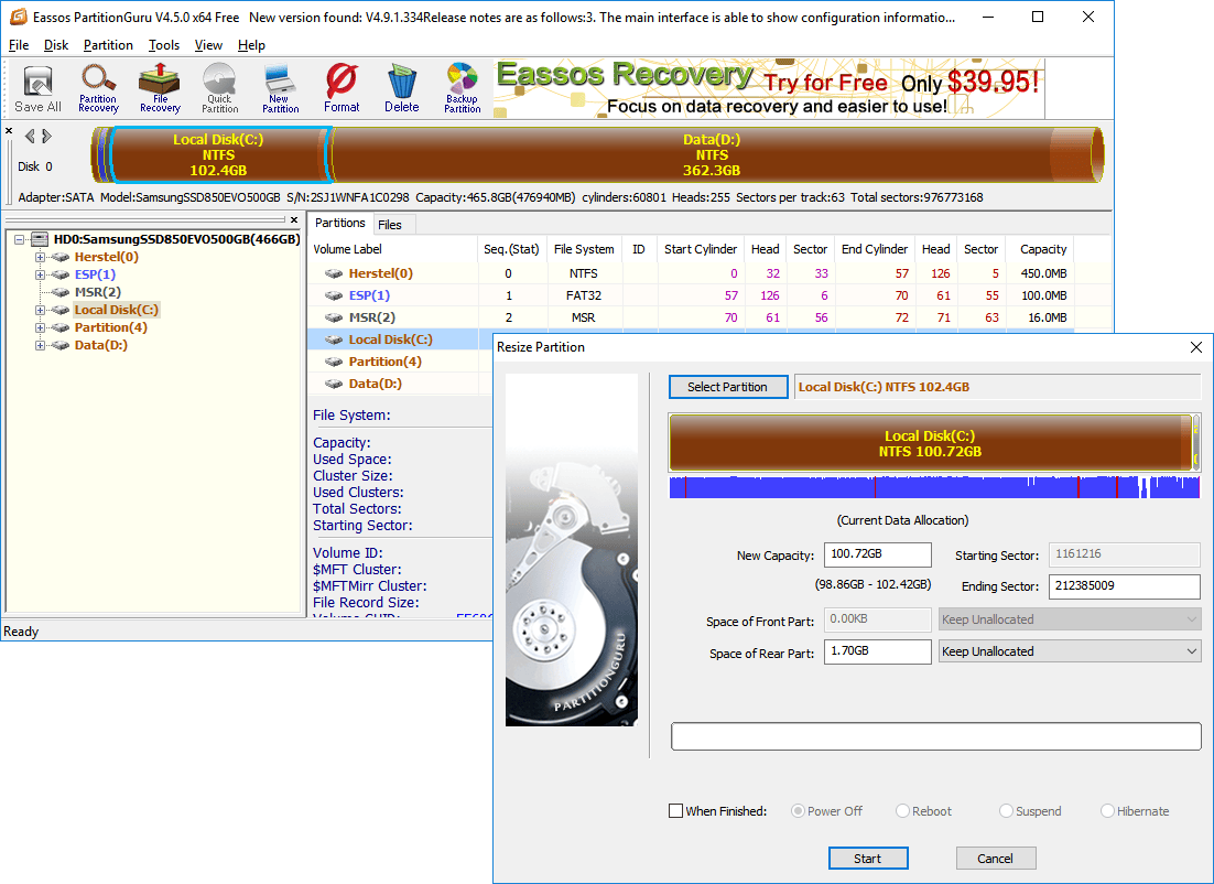 Hoewel PartitionGuru zeer eenvoudig werkt, krijgt het programma toch een hoge moeilijkheidsgraad mee. Het sleutelen aan je schijfindeling is nooit zonder risico. Zorg altijd voor een goede back-up. Laptopgebruikers krijgen het dringende advies om het systeem aan de stroom te hangen. Hiermee voorkom je tussentijdse uitval, want dat kan desastreuse gevolgen hebben als PartitionGuru bijvoorbeeld je partitie verkleint.