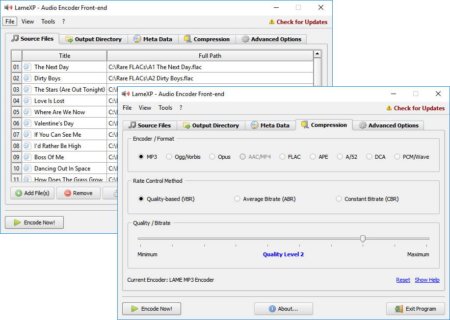 Laat je niet misleiden door de letters ‘XP’ van het programma LameXP. Het programma wordt nog steeds onderhouden door de makers. LameXP maakt het eenvoudig om muziek om te zetten in een ander formaat. Als je alleen via ‘Spotify & co’ luistert of uitsluitend mp3-bestanden hebt, kan LameXP weinig voor je betekenen. LameXP biedt hulp voor iedereen die weleens te maken krijgt met een ‘vreemd’ muziekbestand, bijvoorbeeld een flac- of wav-bestand. Deze indelingen zijn voor muziek van hoge kwaliteit, maar niet compatibel met doorsnee afspeelapparatuur. Start LameXP en sleep de bestanden die je wilt omzetten naar mp3-formaat naar het LameXP-venster. De liedjes worden klaargezet in een lijst. Kies bij Output directory waar LameXP jouw mp3’s moet bewaren. Kijk nog even bij de kwaliteitsinstellingen in het tabblad Compression en bewaar de mp3’s met de knop Encode now.