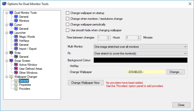 Als je twee (of meer) beeldschermen gebruikt of je laptop regelmatig aansluit op een monitor, weet je dat de standaard Windows-functies beperkt zijn om optimaal gebruik te maken van je extra ‘werkruimte’. Dual Monitor Tools springt hier slim op in. Je kunt bijvoorbeeld snel wisselen tussen je primaire en secondaire (tweede) scherm en allerlei zones instellen op je schermen waarin vensters minimaliseren of maximaliseren. Hierbij staan sneltoetsen centraal om met een zelf te kiezen toetscombinatie de gewenste actie uit te voeren. Ook kan Dual Monitor Tools je bureaublad achtergrond instellen. Je hebt onder andere de keuze om één afbeelding slim uit te rekken of voor je schermen een individuele foto in te stellen. Kijk bij Providers om afbeeldingen van een webdienst te halen, bijvoorbeeld via Flickr. Het kost even tijd om te experimenteren met de mogelijkheden maar het is een zeer handige tool!