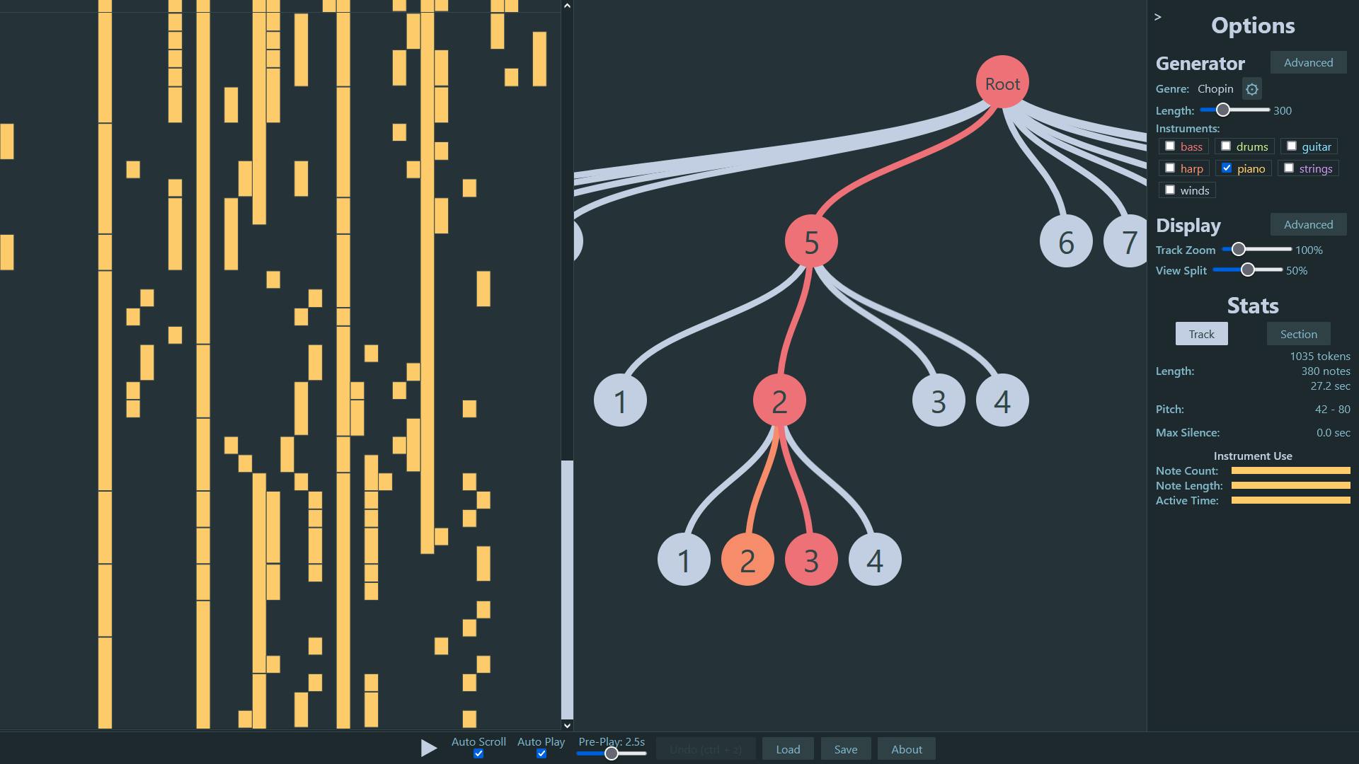 Nu voldoet de muziek van Bach vaak aan strenge regels. Het analyseren van veel vrijere muziek is heel wat lastiger. Maar tegenwoordig komt kunstmatige intelligentie te hulp. Eind vorig jaar presenteerde OpenAI het project MuseNet, een AI die men op allerlei muziekstijlen had losgelaten om deze vervolgens nieuwe muziek te kunnen laten maken. Helaas was de demo daarvan beperkt en dus maakte Steven Waterman een eenvoudig te gebruiken webinterface voor het gehele product onder de naam MuseTree.