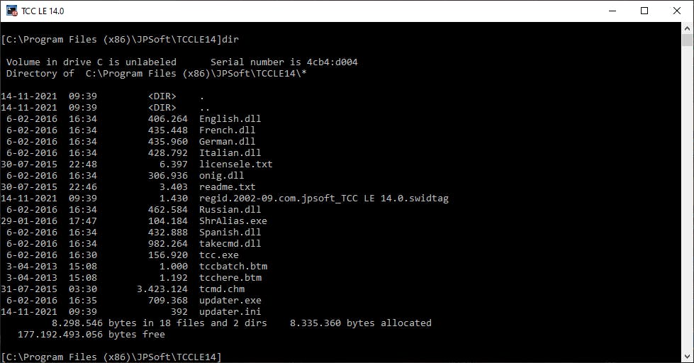 Kortom: ervaren gebruikers weten dat het aloude ‘DOS-venster’ nog altijd onmisbaar kan zijn. Als je zo’n gebruiker bent, dan zul je zeker plezier beleven aan TCC/LE. Hiermee breid je de mogelijkheden van de standaardversie van de Opdrachtprompt uit met tientallen extra opdrachten.