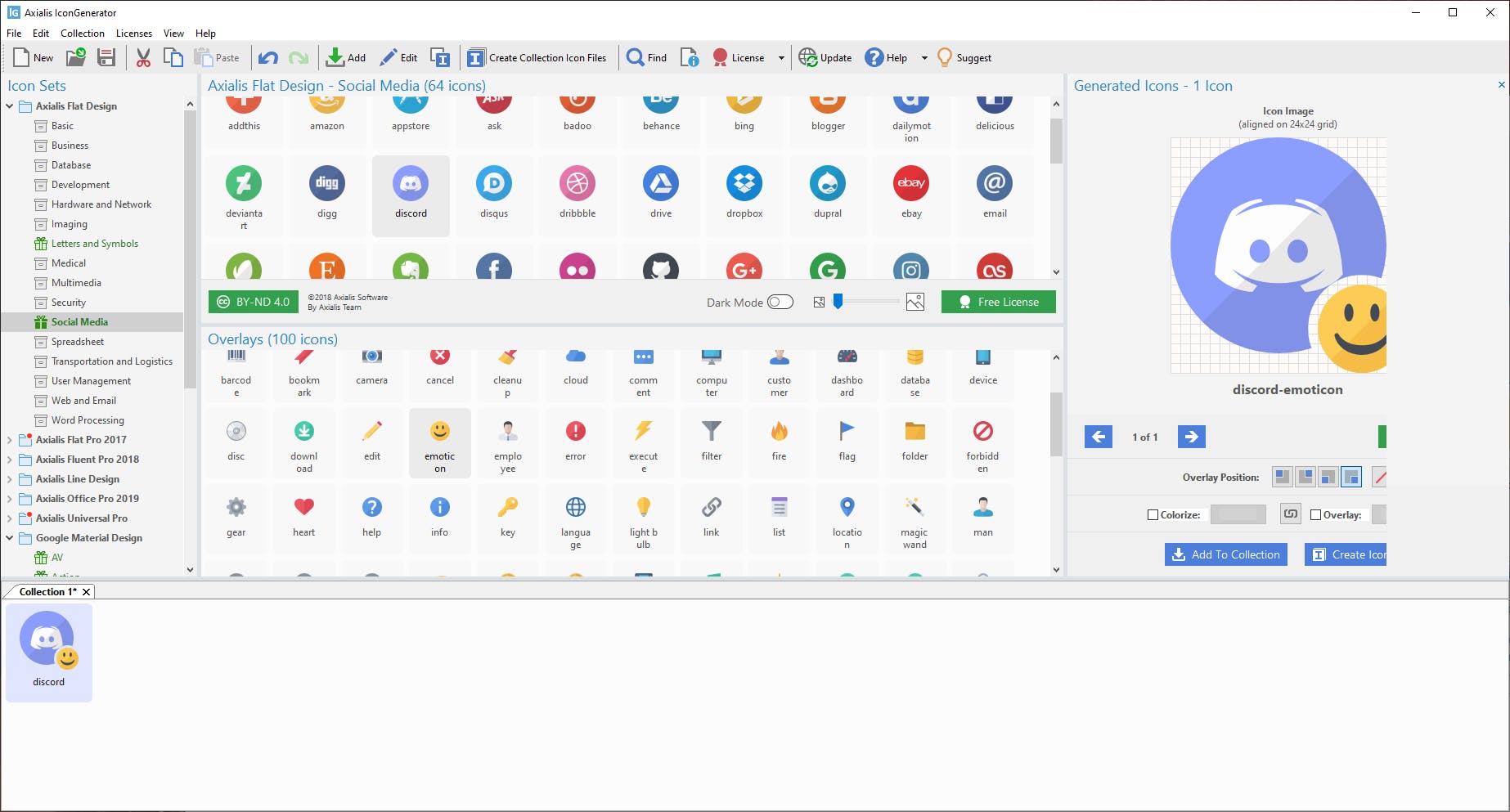 Het programma biedt strak ontworpen pictogrammen in allerhande categorieën als zakelijk, bouw, educatie, vlaggen, hardware, multimedia en sport. Bij elke van deze collecties vind je bovendien een verzameling overlays die je aan een pictogram kunt toevoegen.
