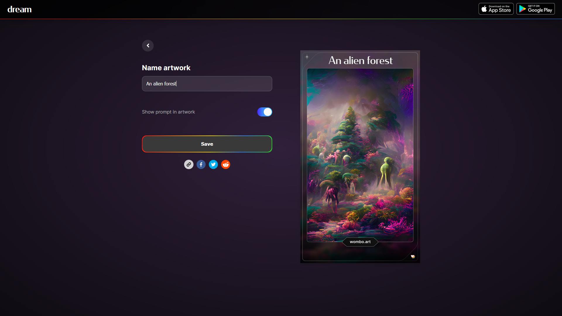 Een van de eerste algemene systemen om plaatjes te maken op basis van tekst (ook wel bekend als text-to-image) is Wombo Dream, dat je online kunt gebruiken maar ook via de eigen iOS- of Android-app.