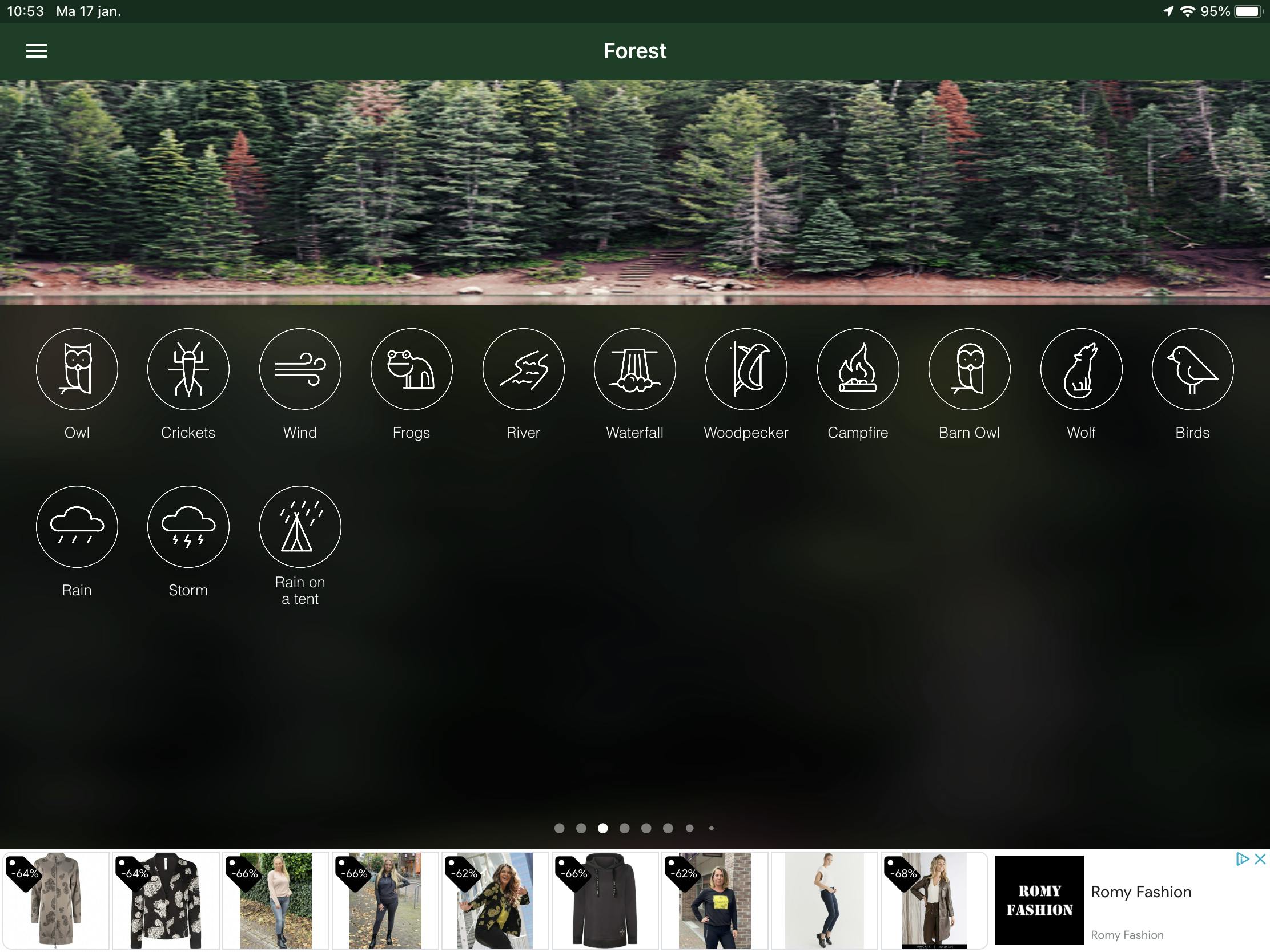 De geluiden van Atmosphere zijn verdeeld in allerlei categorieën en er is voor elk wat wils. Zo zijn er geluiden die verband houden met de kust zoals golven, zeemeeuwen en een knapperend kampvuur op het strand. Of wat dacht je van een bos met krekels of regen die druppelt op het tentzeil? Slaap je als stadsmens op het veel te stille platteland? Ook daaraan is gedacht dankzij verkeer in de verte, zo nu en dan een sirene of bouwgeluiden. Het aardige bij dit alles is dat je de klanken ook naar hartenlust kunt combineren.