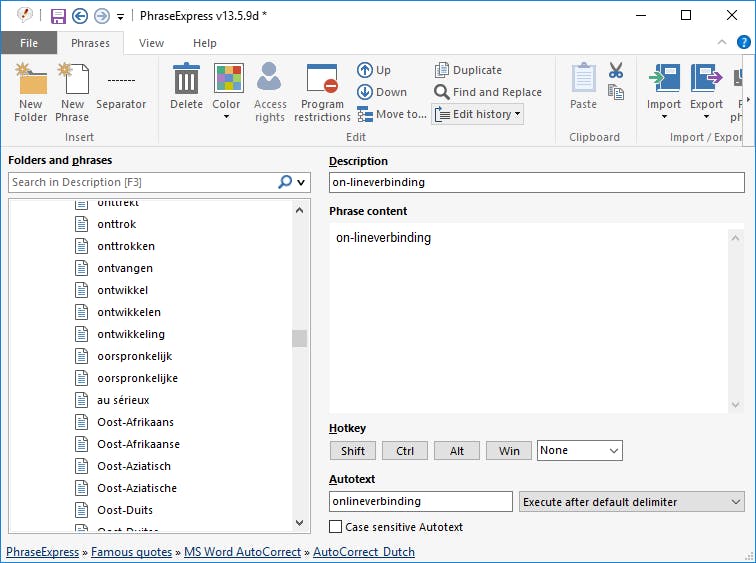 Een van de voordelen van het typen op je smartphone is autocomplete. Je kent het wel, tijdens het typen van een berichtje op je telefoon geeft het toetsenbord je suggesties, hertstelt tikfouten of zet automatisch een hoofdletter op de juiste plek. Het kan je enorm veel tijd besparen als je veel moet typen. Je kan hetzelfde doen op je pc met Phrase Express. Dit programma vult automatisch zinnen aan of herstelt fouten terwijl je op je computer typt. Het werkt in alle programma’s, zoals Word, Chrome, Skype of Outlook. Je moet Phrase Express alleen eerst wel trainen. Veelgebruikte zinnen kun je zelf toevoegen aan de database. Maar het is ook mogelijk om plug-ins te installeren. Voor het automatisch corrigeren van Nederlandse typefouten, kun je dit bestand importeren. Open daarvoor het tabblad Phrases, klik op het pijltje onder Import en kies File Import. Kies vervolgens het gedownloade bestand.