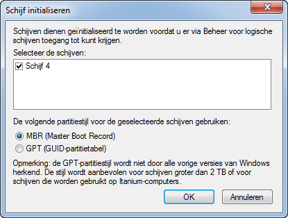 Een iSCSI-disk moet net als een echte lokale harde schijf geïnitialiseerd en geformatteerd worden.