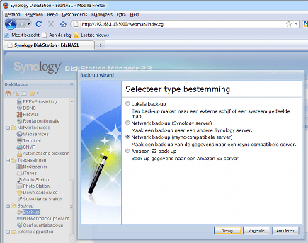 Is op de doel-NAS de Rsync-service geactiveerd en een map gemaakt om de back-up te bewaren, log dan in op de NAS waarop de gegevens staan die via Rsync geback-upt moeten worden. Maak een nieuwe back-uptaak aan en kies een Rsync-compatibele server als bestemming. De Rsync-client leest dan de Rsync-server uit en zal vragen welke map moet worden gebruikt om de back-up op te slaan. Selecteer de juiste map, geef een gebruikersnaam en wachtwoord en bepaal welke mappen u wilt back-uppen. Tot slot kunt u de back-uptaak op door u ingestelde tijdstippen laten uitvoeren. Een eerste test zal laten zien dat alle opties correct zijn geconfigureerd.