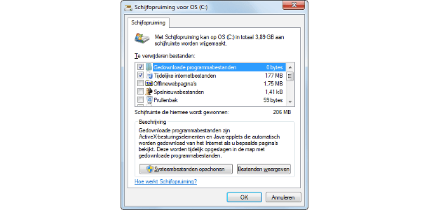 Windows houdt een map bij met tijdelijke documenten. Wilt u de map met tijdelijke bestanden daadwerkelijk opschonen, dan heeft Schijfopruiming een steuntje in de rug nodig. Bestanden in de map met tijdelijke bestanden worden pas verwijderd wanneer ze ouder zijn dan een week. 'Jongere' bestanden dient u zelf handmatig te verwijderen. Klik op Start / Uitvoeren, typ %TEMP% en klik op OK. Er wordt nu een map geopend waarin u de bestanden kunt selecteren en verwijderen.