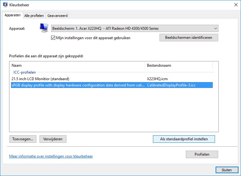 Controleer het kleurprofiel dat aan je monitor is gekoppeld