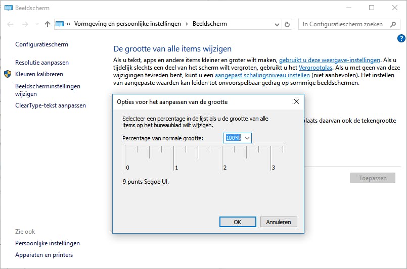 Pas bij een 4K-monitor het dpi-schalingsniveau aan