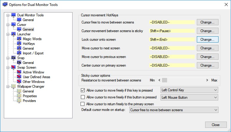 In de meeste gevallen zul je de optie Bureaublad uitbreiden naar dit beeldscherm voor je tweede monitor willen kiezen. Wil je zo’n monitoropstelling van een paar leuke of handige extra’s voorzien, download dan het gratis Dual Monitor Tools. Deze software verzamelt diverse functies in één interface. Zo kun je sneltoetsen definiëren om de cursorbeweging (tijdelijk) binnen één monitor te beperken, om vensters naar de andere monitor te sturen, of om naar elke monitor een andere bureaubladachtergrond te sturen. Het is ook mogelijk een snapshot van de ene monitor te maken en dat naar de andere te sturen. Dat kan bijvoorbeeld handig zijn als je een demonstratie van het een of ander geeft.