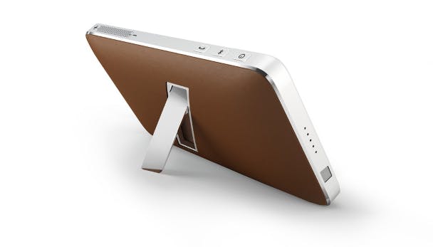 Door het pootje uit te klappen blijft de Mini goed staan. Let ook op de matte achterkant: erg stijlvol!