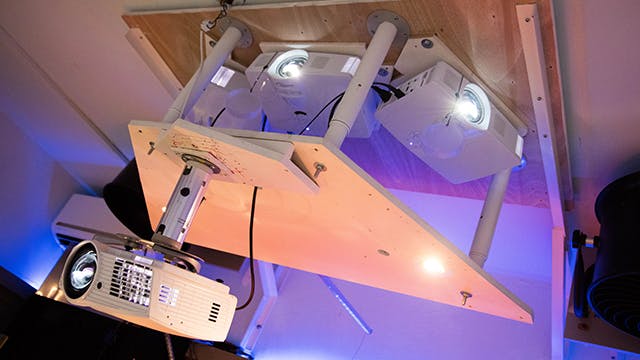 De juiste hoeveelheid projectoren achterhalen bleek een proefondervindelijk proces. In eerste instantie is nog een tussenstop gemaakt met drie projectoren, maar de sweet-spot bleek bij zes te liggen. Hier is vervolgens met software nog een extra update op gemaakt.
