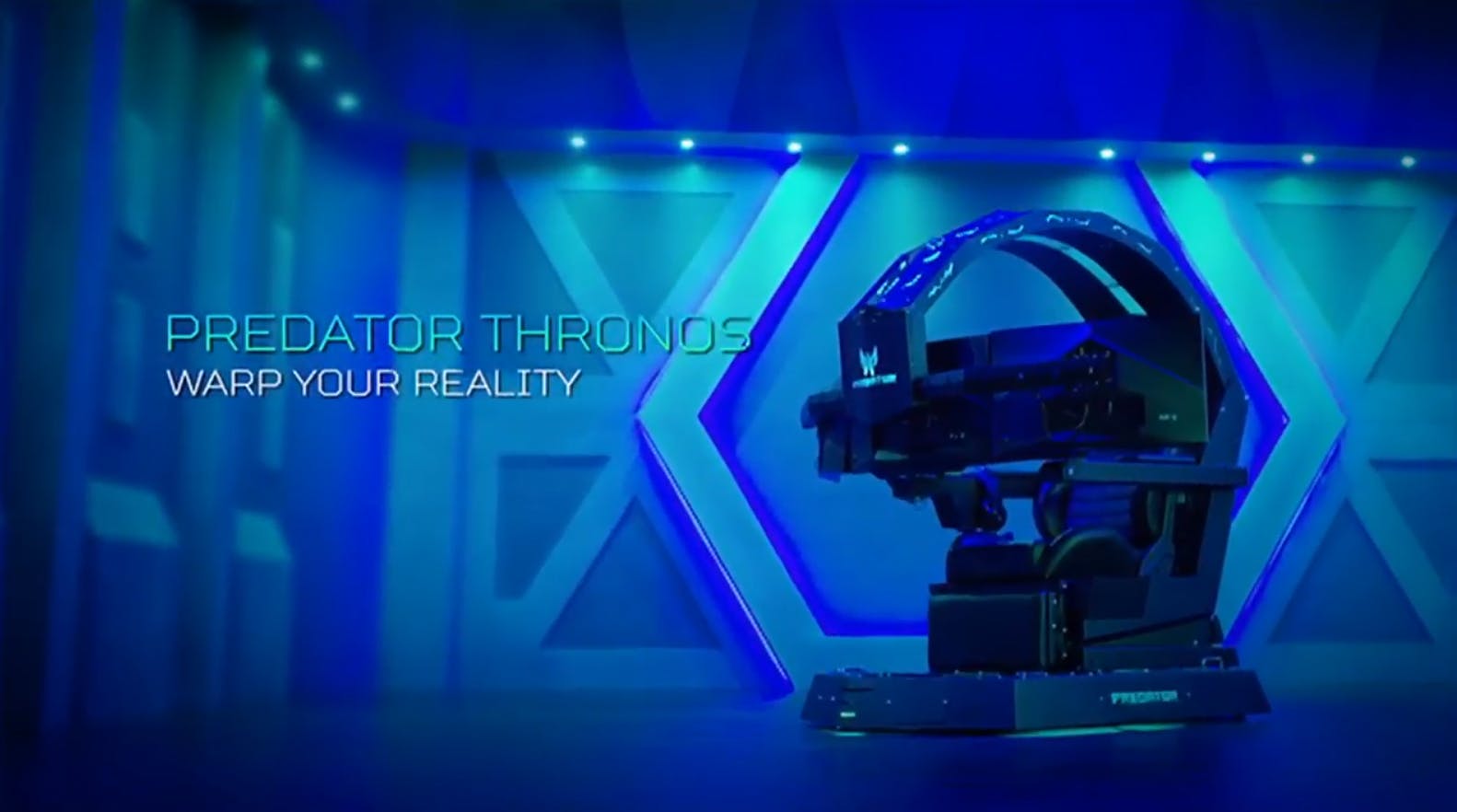 De meest futuristische onthulling blijkt de Thronos. Dit is een gamingstoel met geïntegreerde Predador-gaming-pc, waarbij je drie schermen van 27-inch voor je neus krijgt. De Thronos trilt mee met de actie op het scherm en de 'cockpit' kan ook draaien en kantelen.