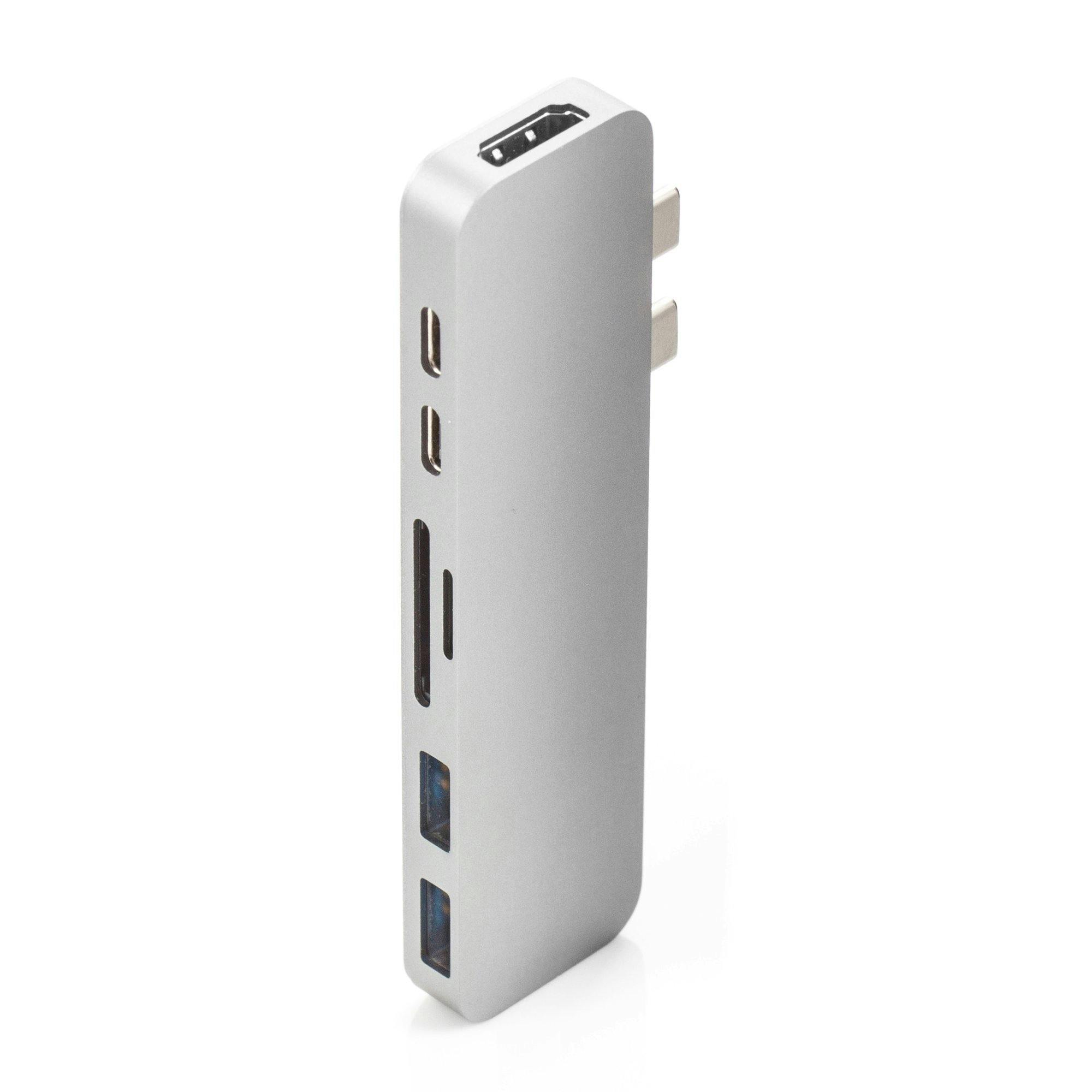 Prijs: € 129,- Dit usb-dock is van het type dat je rechtstreeks in je laptop prikt (hij is ontworpen voor de MacBook, maar we zien steeds meer laptops die de afstand van de usb-poorten daarop afstemmen). Eenmaal aangesloten, breidt dit dock je laptop uit met een hdmi-poort, een displayport, twee usb-c-poorten, twee usb3.0-poorten en een sd-kaartlezer.