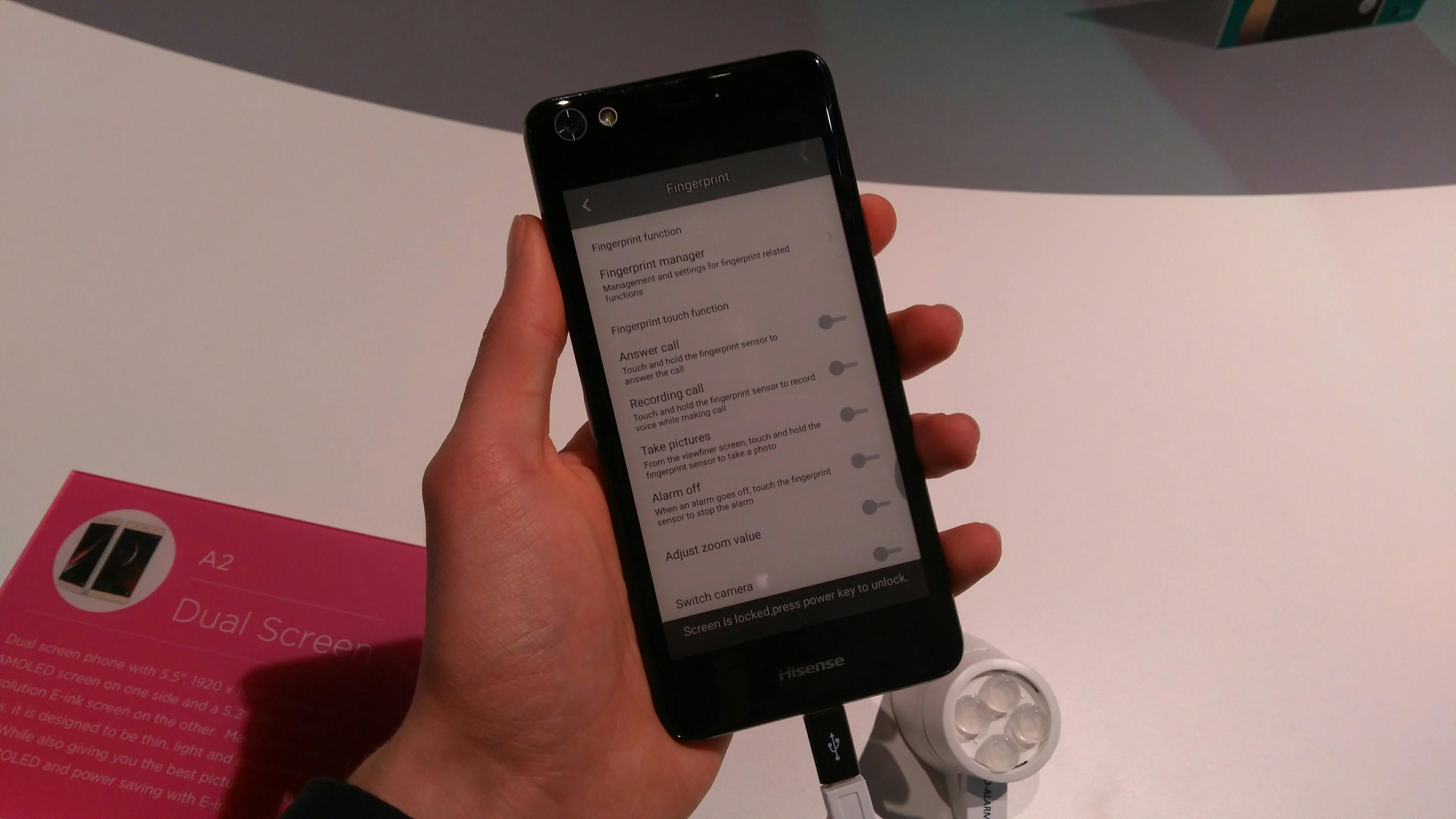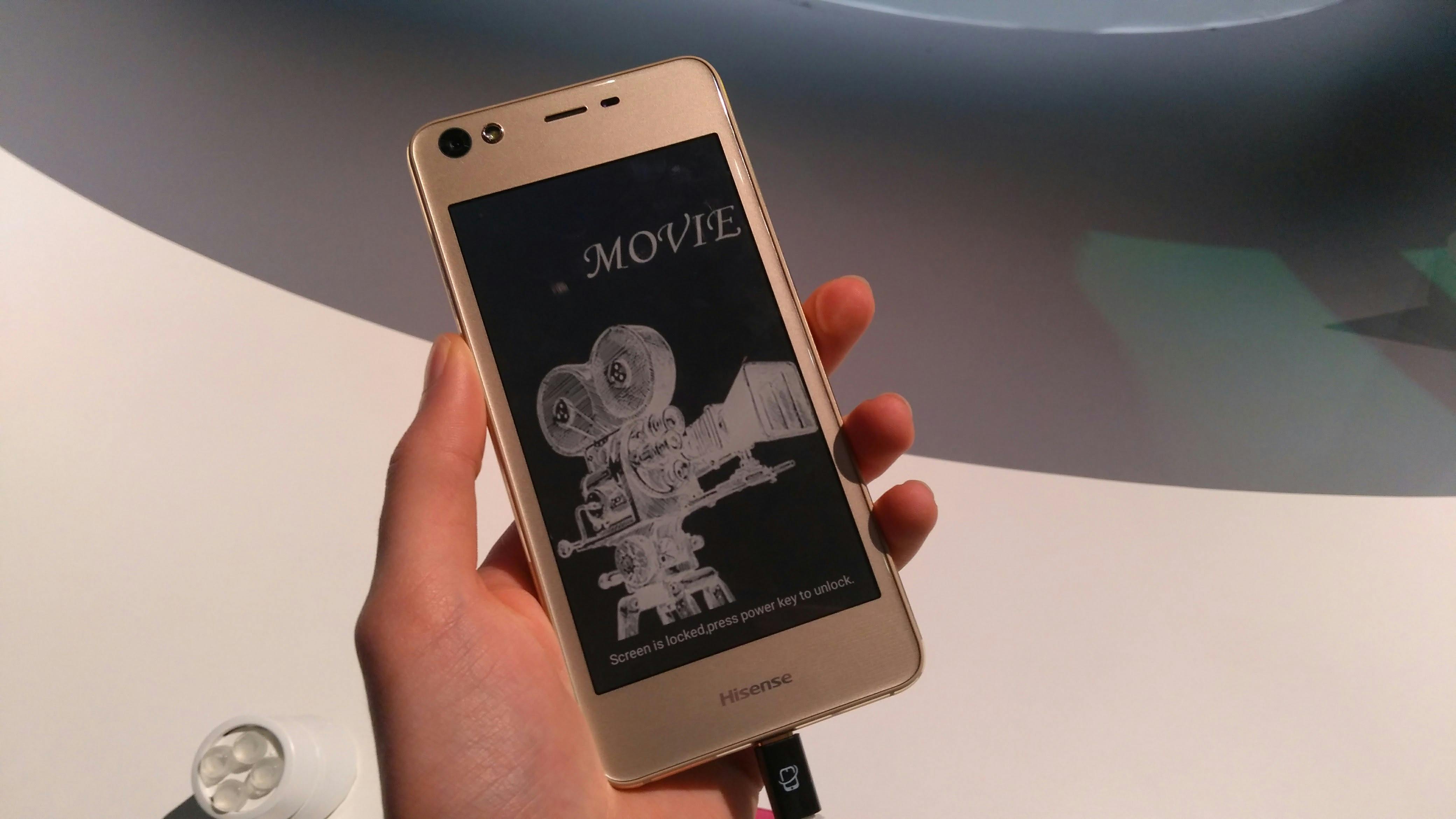 Het 5,2 inch grote display heeft een resolutie van 960 bij 540 pixels en is bruikbaar als het primaire scherm uitstaat. In principe kun je alles wat je op het normale display doet ook op het e-ink-exemplaar doen, al is de uitwerking niet altijd goed. Foto’s, films en spelletjes komen bijvoorbeeld slecht uit de verf omdat het scherm een lage resolutie en lage ververssnelheid heeft. Je kan het e-ink-display beter gebruiken voor statische zaken als het lezen van een e-book of het tonen van een boodschappenlijstje of de tijd. Dat werkt stukken beter, maar is niet nieuw. YotaPhone introduceerde het e-ink-scherm al in 2014 op zijn smartphones. Hisense lijkt slechts één nieuwe functie toe te voegen: het display blijft een statische afbeelding tonen als de accu van de telefoon leeg is. Handig!