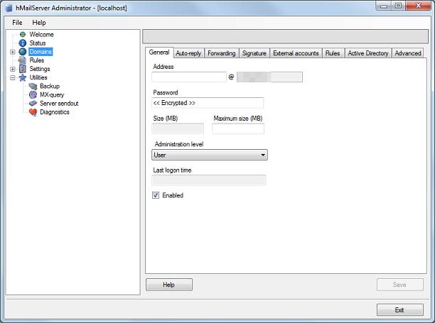 Uiteraard moet u in hMailServer alle gewenste e-mailaccounts creëren. Een e-mailadres kan in principe volstaan, maar er zijn nog heel wat andere opties mogelijk. U bepaalt bijvoorbeeld per gebruiker de maximumgrootte van de mailbox, u activeert auto-reply of forwarding, u legt complexe regels vast (bijvoorbeeld: verwijder de mail indien de onderwerpsregel woord x bevat), enz. Naast klassieke e-mailaccounts voorziet hMailServer ook in aliassen en distributielijsten.