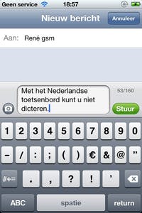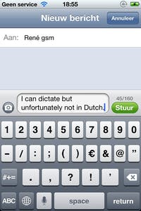 Hoewel u teksten kunt inspreken zonder de hulp van Siri, is de technologie die uw stemgeluid om kan zetten in een nauwkeurige, leesbare tekst wel dezelfde technologie die ook achter Siri schuilgaat. Dat betekent dus helaas dat, totdat Siri ook beschikbaar komt in het Nederlands, u geen Nederlandse teksten zult kunnen dicteren. Dat is jammer, maar een kwestie van geduld. Maar wat als u ook met enige regelmaat berichten naar het buitenland stuurt? Moet u dan telkens de taal van uw telefoon wijzigen om te kunnen dicteren? Gelukkig is dat niet het geval.