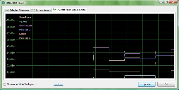 Homedale toont de signaalsterkte, de snelheid, het kanaal en de encryptietechnieken (WEP, WPA en WPA2). De signaalsterkte wordt getoond in een grafiek. Zo kunt u eenvoudig nagaan hoe de verbinding nu is en de afgelopen tijd was. Homedale heeft geen installatie nodig en werkt direct vanaf een usb-stick. Dit maakt het programma handig gereedschap om draadloze storingen nader te inspecteren bij vrienden en kennissen. Naast de standaard weergave heeft Homedale geavanceerde functies om bijvoorbeeld een logbestand bij te houden. Dit laatste is niet bedoeld voor beginners, maar wel handig voor experts. Op de website van de makers wordt in een duidelijke instructievideo uitgelegd hoe u de geavanceerde functies van Homedale gebruikt.