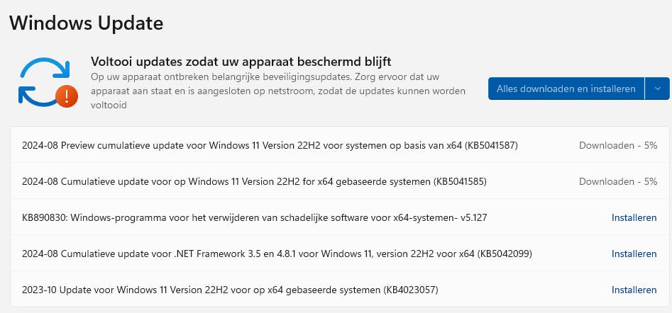 Updates zijn essentieel voor de beveiliging van elk apparaat. Of het nu om een tablet, Mac of Windows-pc gaat, installeer altijd alle updates. Android, iOS, Windows en macOS beschikken allemaal over functionaliteit om de software te updaten. Installeer updates zo snel mogelijk en herstart indien gevraagd het systeem om vooral kritische updates ook echt actief te maken.