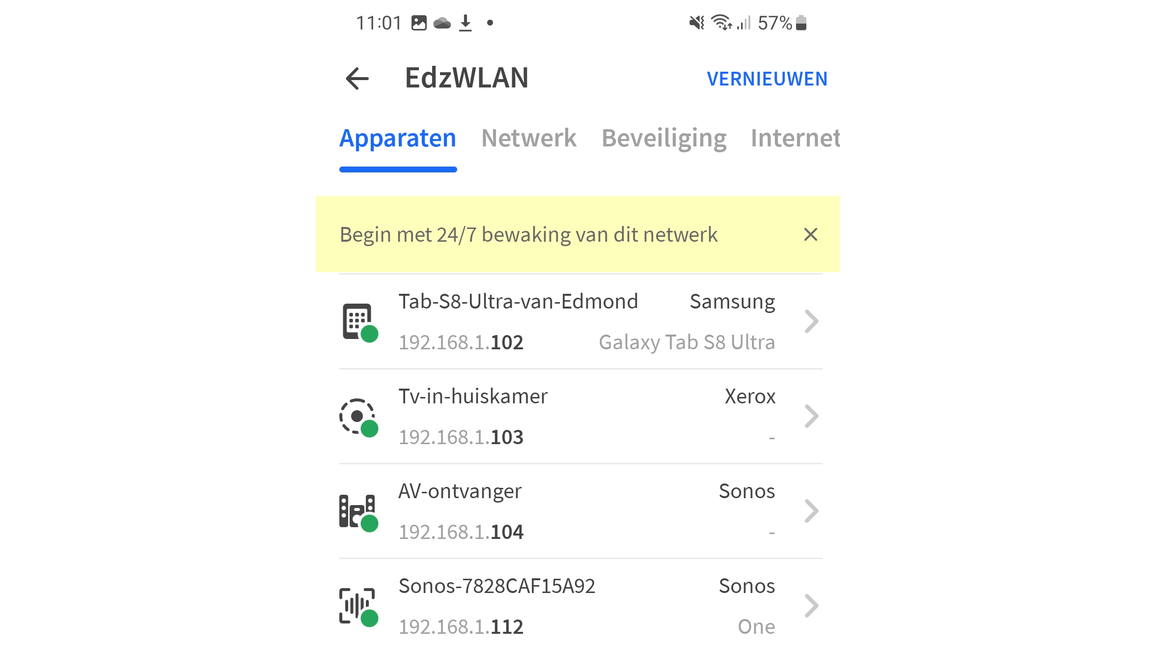Niet alleen de software op de pc is kwetsbaar als het niet is geüpdatet naar de laatste versie, dit geldt ook voor alle apparaten in het thuisnetwerk. En dat zijn er steeds meer. En lang niet allemaal krijgen ze automatisch updates of zijn er ook maar updates voor beschikbaar. Door de veelheid aan merken en modellen is er helaas geen eenvoudige oplossing voor het probleem. Belangrijke stappen zijn allereerst weten welke apparatuur er allemaal in het netwerk aanwezig is. Hierbij kan een netwerkscanner helpen. Verschillende aanbieders van antivirus-oplossingen bieden in hun apps voor mobiele apparaten zo’n functie.