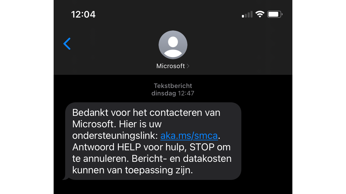 Meer ondersteuning dan een sms met een link hoeft een consument van Microsoft Nederland niet meer te verwachten.