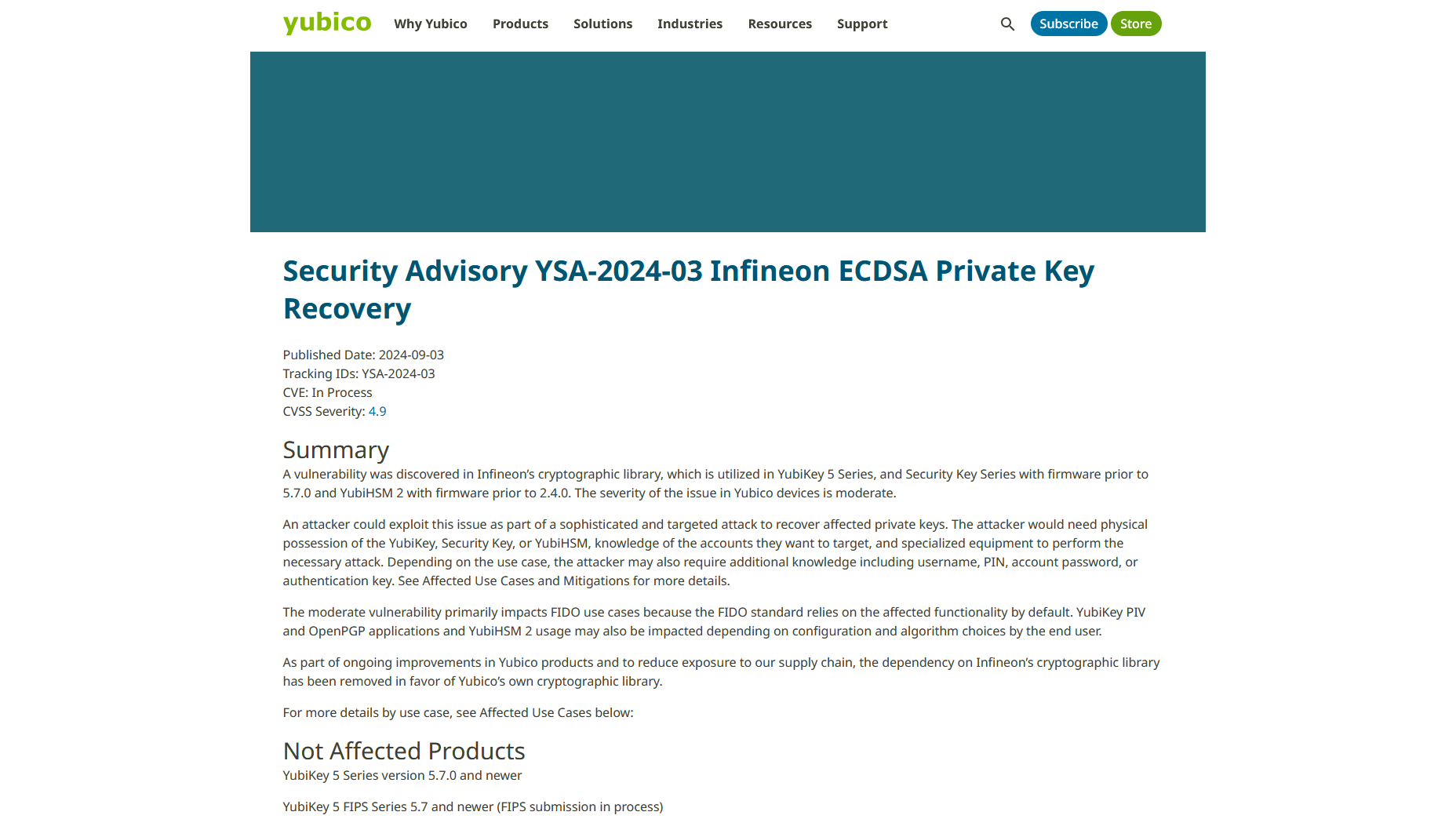 Yubico biedt informatie over de kwetsbare modellen van de YubiKey series 5 en wat gebruikers van deze modellen moeten doen.