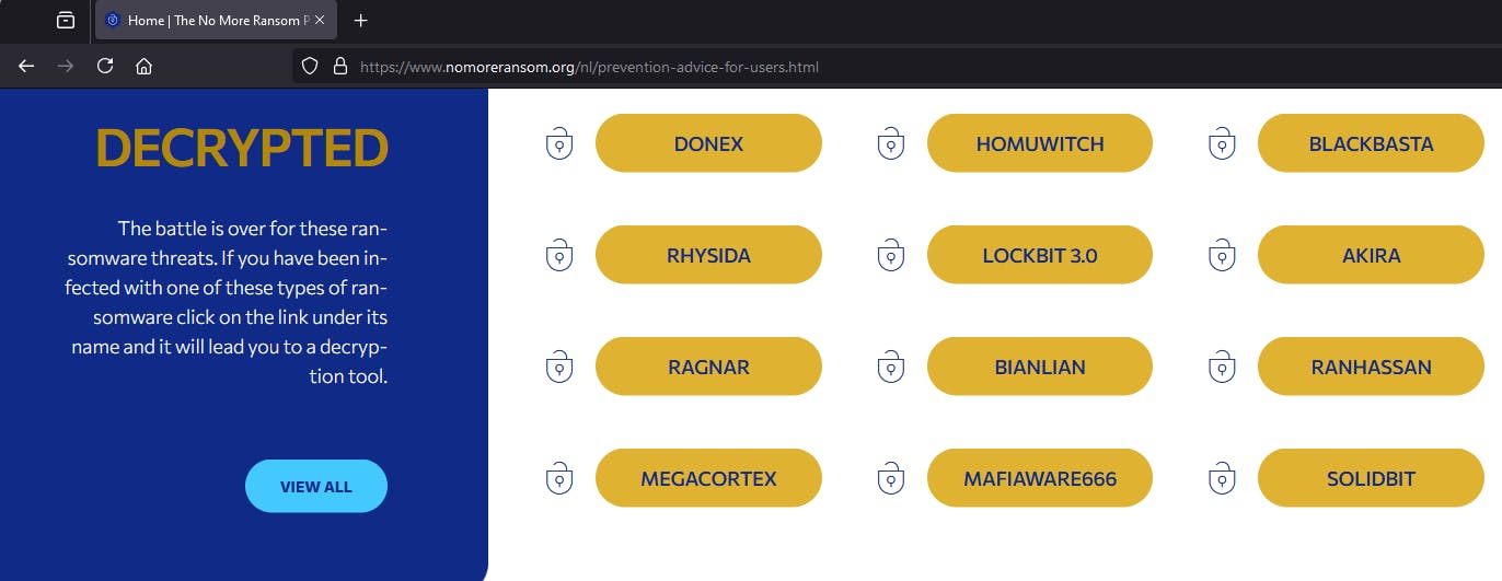 Op NoMoreRansom is een aantal ransomware-decryptortools te downloaden.