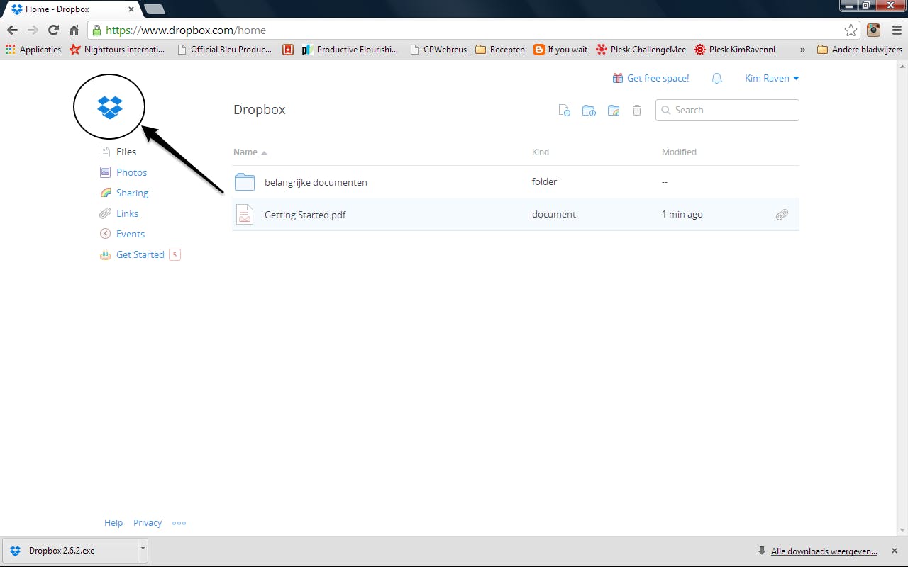 Op elke laptop of computer met internet kun je nu altijd inloggen om bij deze bestanden te komen. Heb je de app gedownload? Dan kun je alle bestanden ook op je harde schijf vinden, zodra je Dropbox opent via het pictogram rechts onderin je taakbalk, of via dit scherm.