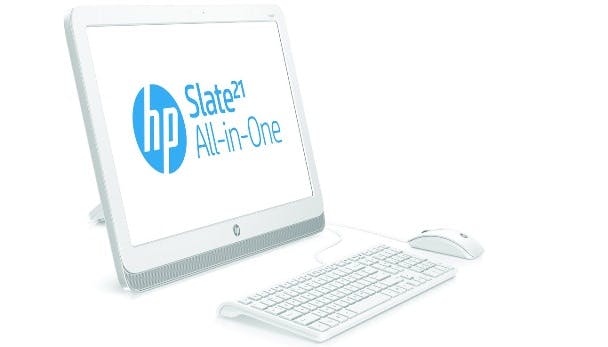 De Slate 21 is de nieuwste loot aan de Android-boom van HP en vanaf deze week te koop in Nederland. Het apparaat met 1 GB geheugen en 8 GB opslag (eMMC) huist in een 21,5 inch touch-scherm met een achtersteun die in verschillende standen valt te zetten. Op de Tegra 4-processor van Nvidia draait de net-niet-nieuwste Android-versie 4.2.2 (codenaam Jelly Bean, net als voorganger 4.1 en opvolger 4.3). De adviesprijs van de computer voor Nederland is 379 euro.