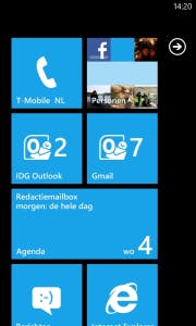 Het startscherm bestaat uit vierkante blokken, de Live-tegels.