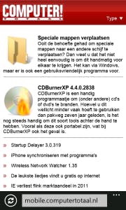 Tot slot willen we Windows Phone 7.5 kort vergelijken met iOS 5, een besturingsysteem waar veel meer mensen mee bekend zijn. Windows Phone is met versie 7.5 een volwassen platform geworden met een eigenzinnige maar interessante en overzichtelijke interface die het anders aanpakt dan iOS en Android. Het laat u met de Live-tegels al snel zien wat u moet doen en of u e-mails, gemiste gesprekken of berichten hebt. Ook de integratie met sociale netwerken is goed voor elkaar. Ook Apple heeft in iOS 5 met het Berichtencentrum een sterke nadruk gelegd op het weergeven van onder andere nieuwe e-mails, gemiste gesprekken en berichten. Toch vinden we Microsofts manier prettiger werken. Iets waar Apple voorlopig nog heer en meester in blijft, is de hoeveelheid apps. Windows Phone 7.5 staat wat dat betreft eigenlijk in de kinderschoenen. Beide platformen zijn het over één ding eens: Twitter is groot genoeg om als prominente mogelijkheid in het systeem te dienen. Microsoft gaat nog een stapje verder en integreert ook Facebook en LinkedIn op een fraaie manier. Een andere overeenkomst tussen iOS en Windows Phone 7.5 is dat er weinig aan te passen valt. U moet qua interface eigenlijk leven met wat Apple en Microsoft bedacht hebben, en bij Windows Phone 7.5 is er zelfs geen achtergrondje te bekennen. Wilt u vooral browsen, mail lezen en in contact staan met andere mensen en geeft u niet veel om de allernieuwste apps, dan is ook Windows Phone 7.5 een erg goed besturingssysteem.